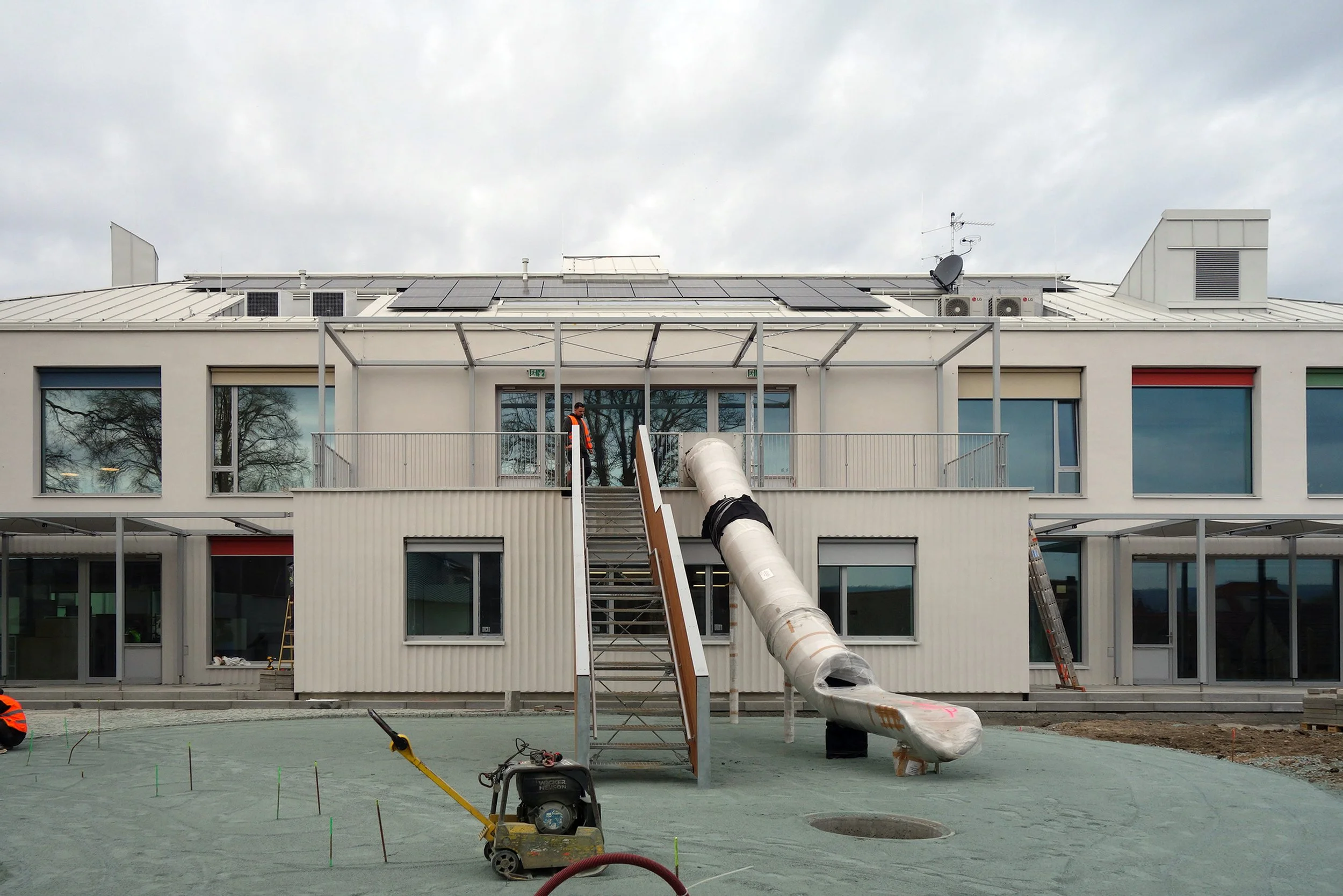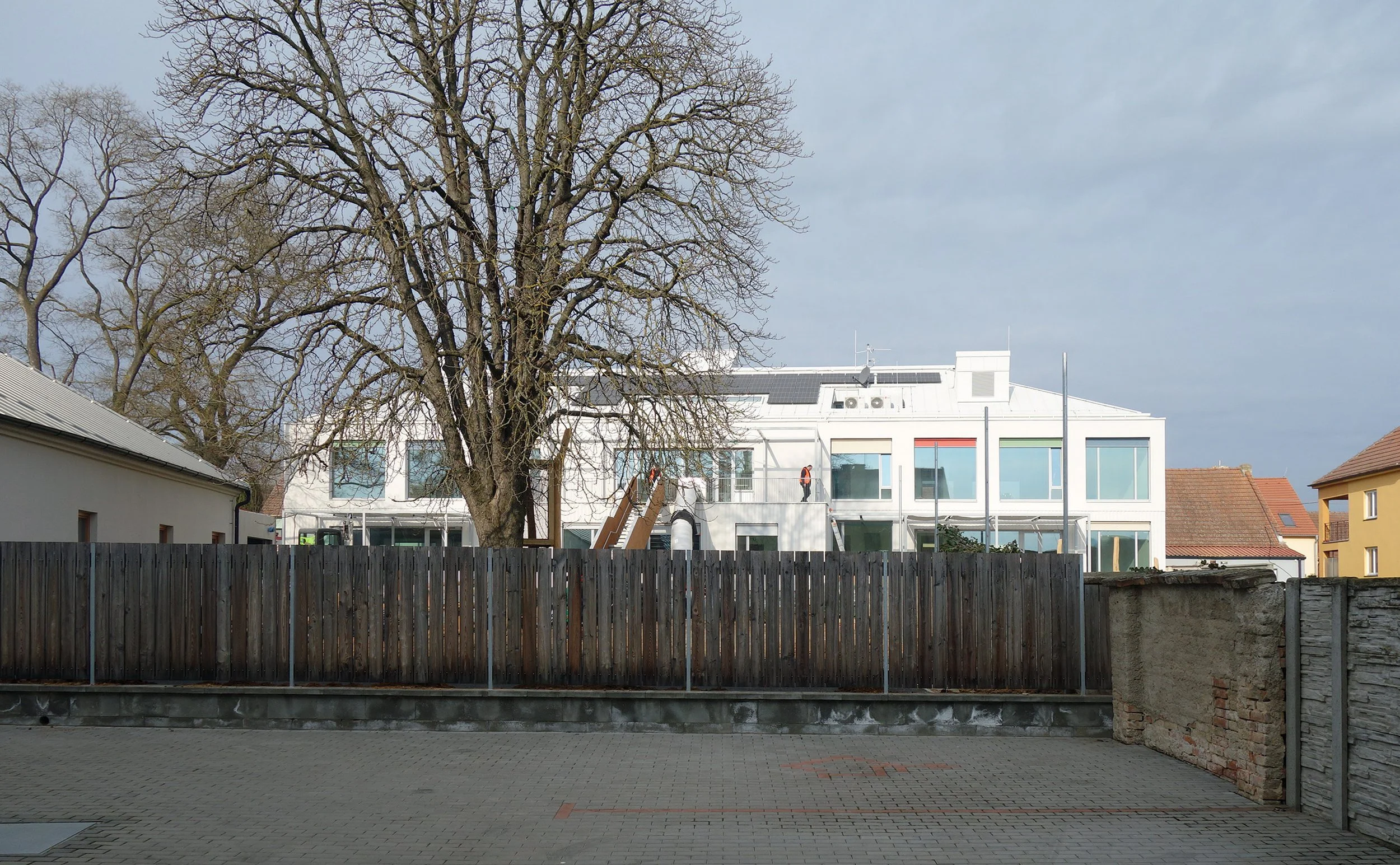 V létě 2024 byla stávající mateřská škola v Hrušovanech u Brna odstraněna. Děti jsou dočasně umístěné v Sokecu, stavba nové budovy je v plném proudu.